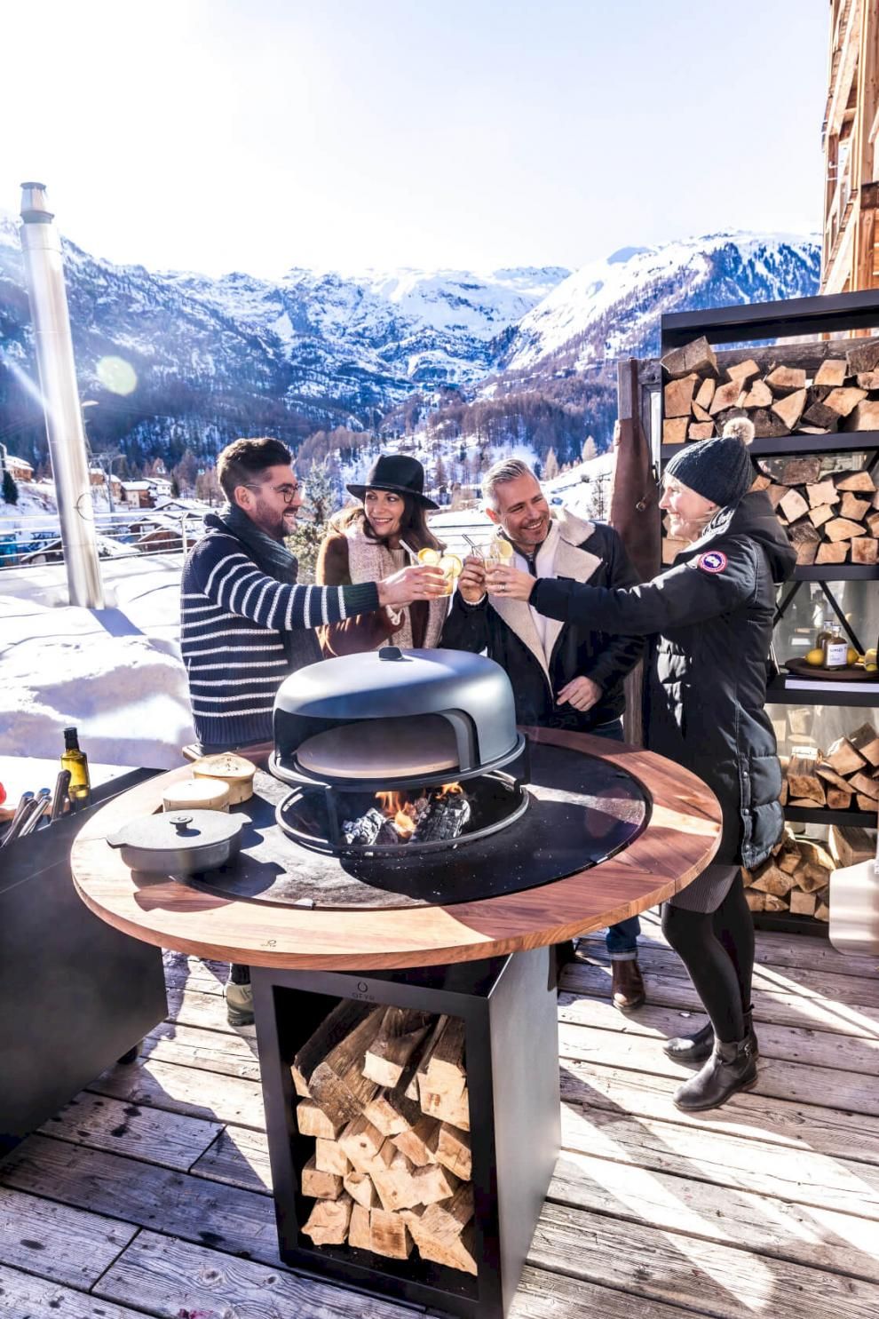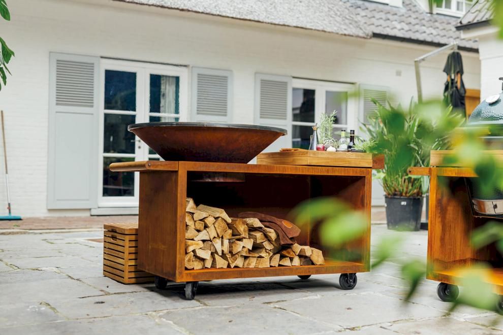 Sa conception multifonctionnelle garantit une utilisation polyvalente en toutes saisons. Remplissez Ofyr de bûches et créez un brasero agréable autour duquel tout le monde se rassemble. En tant que cuisine d’extérieure, préparez une variété de plats devant et avec votre famille ou vos amis.